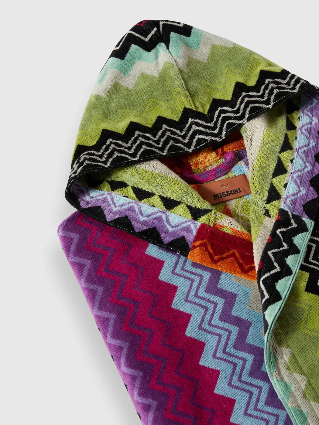 Tauchen Sie ein in pure Eleganz mit dem kurzen Giacomo T59 Bademantel von Missoni – ein luxuriöses Statement für stilvolle Wohlfühlmomente. Gefertigt aus weichem Baumwollfrottee bietet er ein angenehmes Tragegefühl. Gleichzeitig ist er ein buntes, stilvolles Accessoire, denn das ikonische Zickzackmuster in verschiedenen Farben verleiht ihm eine lebendige, moderne Ästhetik, die sofort ins Auge fällt. Praktische Taschen, ein Taillengürtel und eine Kapuze komplettieren den Look. Überzeugen auch Sie sich von der Qualität der Marke Missoni.